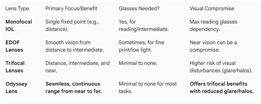 At-a-Glance IOL Comparison: Vision Range & Trade-Offs